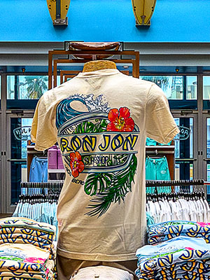 Ron Jon’s other Florida locations include Lake Buena Vista, Fort Myers, Key West, Panama City Beach, Clearwater Beach and Pensacola Beach. There are also Ron Jon shops in Ocean City, Maryland; Orange Beach, Alabama; and Myrtle Beach, South Carolina.