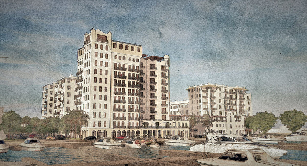 The project features a 140-room hotel, 10 luxury villas and 106 residential condominiums with more than 35,000 square feet of commercial and restaurant space as well as 17,000 square feet of retail space. There may be the addition of rooftop entertainment on one of the buildings, according to discussions.