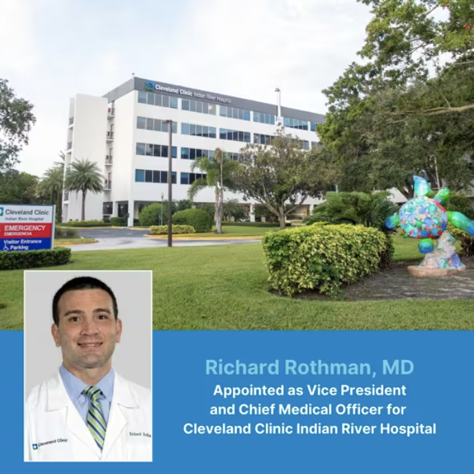 Cleveland Clinic Indian River Hospital has appointed Richard Rothman, M.D., as Vice President and Chief Medical Officer, effective immediately. Dr. Rothman transitions from his interim role to a permanent position, bringing a wealth of experience and dedication to the hospital and the community it serves.