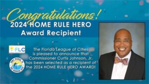 Commissioner Curtis Johnson Jr. of the City of Fort Pierce has been recognized for his exceptional dedication and advocacy by the Florida League of Cities (FLC). He was recently honored with the prestigious 2024 Home Rule Hero Award, which celebrates individuals who have demonstrated unwavering commitment to preserving local decision-making and advancing the interests of municipalities during the legislative process.