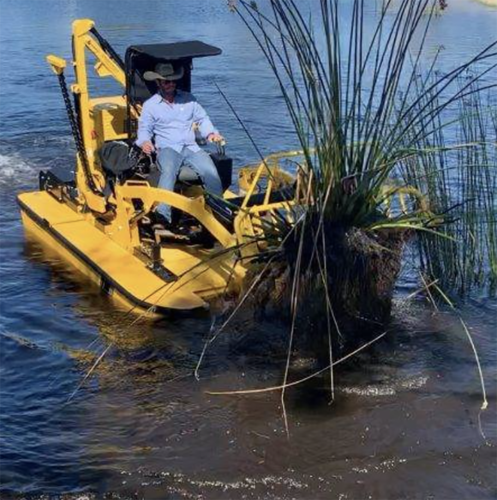 The company’s vessel lineup includes highly maneuverable shallow- draft workboats that can operate in as little as eight inches of water. Equipped with biomass-loading devices, these vessels are capable of collecting up to 500 pounds of vegetation per intake cycle.