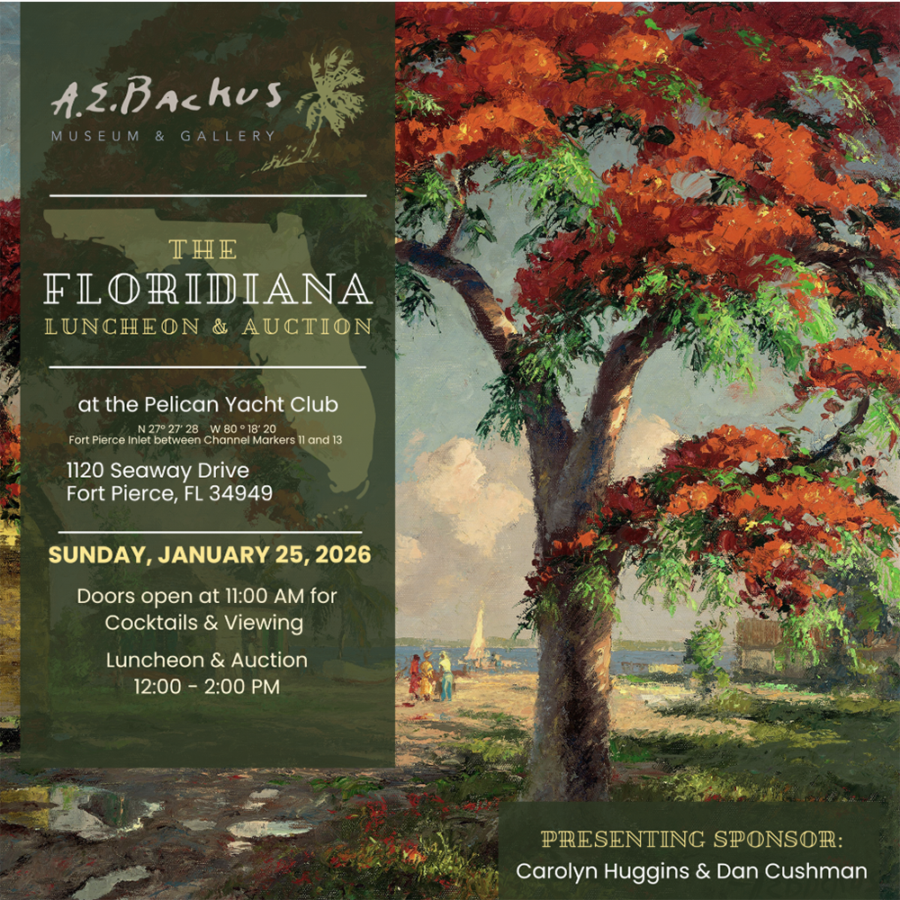 The A.E. Backus Museum & Gallery extends its gratitude to Presenting Sponsors Carolyn Huggins & Dan Cushman for their continued support of The Floridiana – Luncheon & Auction. Don’t miss this one-of-a-kind celebration of Florida while supporting the Museum you love—reserve your seats today!