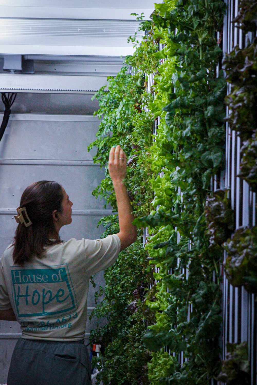 Last year’s grant from Foxwynd Foundation helped House of Hope procure perishable items for its pantries—like milk, butter, eggs, chicken, and turkey—and supported the production facilities at Growing Hope Farm. This year’s grant will continue that effort and add a second freight farm on the property. Like the first freight farm purchased in the spring of 2025, it consists of an innovative temperature-controlled hydroponic greenhouse where fresh produce is grown without pesticides. It complements the hydroponic greenhouses, in-ground beds, and orchard already in full operation on Growing Hope Farm.