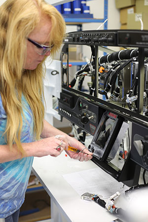 A Piper worker puts together a Garmin G3000 panel for a Piper M600 plane, the instrument panel for the aircraft made in Vero Beach. PIPER AIRCRAFT