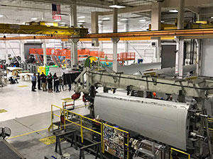Three may not sound like a lot, but when the product is the sophisticated center wing section and other assemblies that Triumph makes for the Boeing 767, three is a demanding number. Of the nearly 400 workers at the Stuart plant, more than 60 percent are those who touch the products. These workers are called mechanics, but Heitkamp says, “Our people really become skilled master mechanics” because of the demands of the job.