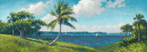 M. Kiplinger(1891-1967), a famed Washington journalist with a home on Sewall’s Point, discovered the art of A. E. Backus and the two became friends in the 1950s. Despite great differences in their lifestyles, the two shared a charitable mind-set when it came to support for the community. Kiplinger found Backus to be a close counterpart in many ways. He also admired Backus’ work and commissioned a number of significant paintings by the artist included in the exhibition. One of the important works he commissioned is a nearly 9-foot long, mural-sized painting of the St. Lucie River from his Sewall’s Point estate. The view from the estate, Bay Tree Lodge, was perfect for and certainly destined to become a Backus painting. When Martin County built its first library on land that Kiplinger donated to the community, he also donated the Backus mural-sized painting to the library. The painting, which is kept at its permanent home at the Blake Library in Stuart, will be part of the Kindred Spirits exhibition. This will give Backus Museum visitors the opportunity to appreciate the painting up-close for the first time since 1999, as it will be installed at eye-level for ideal viewing.