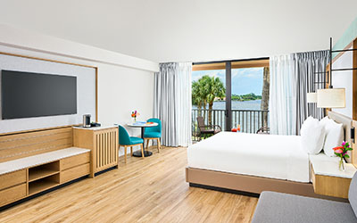 Accommodations include king standard, river-view and garden-view rooms, featuring balconies or walk-out patios, mini-fridges, coffeemakers, HDTV, WiFi, tables, tub/showers and USB charging stations, as well as the standard amenities.